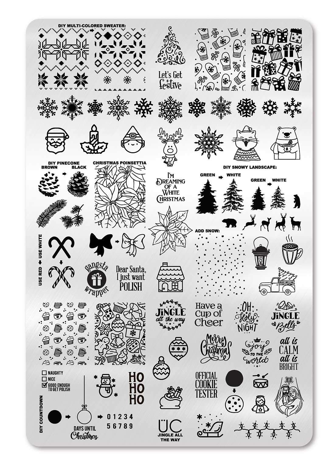 Uber Chic has outdone themselves! This brand new Christmas plate has EVERYTHING! A layerble ugly sweater, a singing cat, layerable pine cones, trees, bows and more!