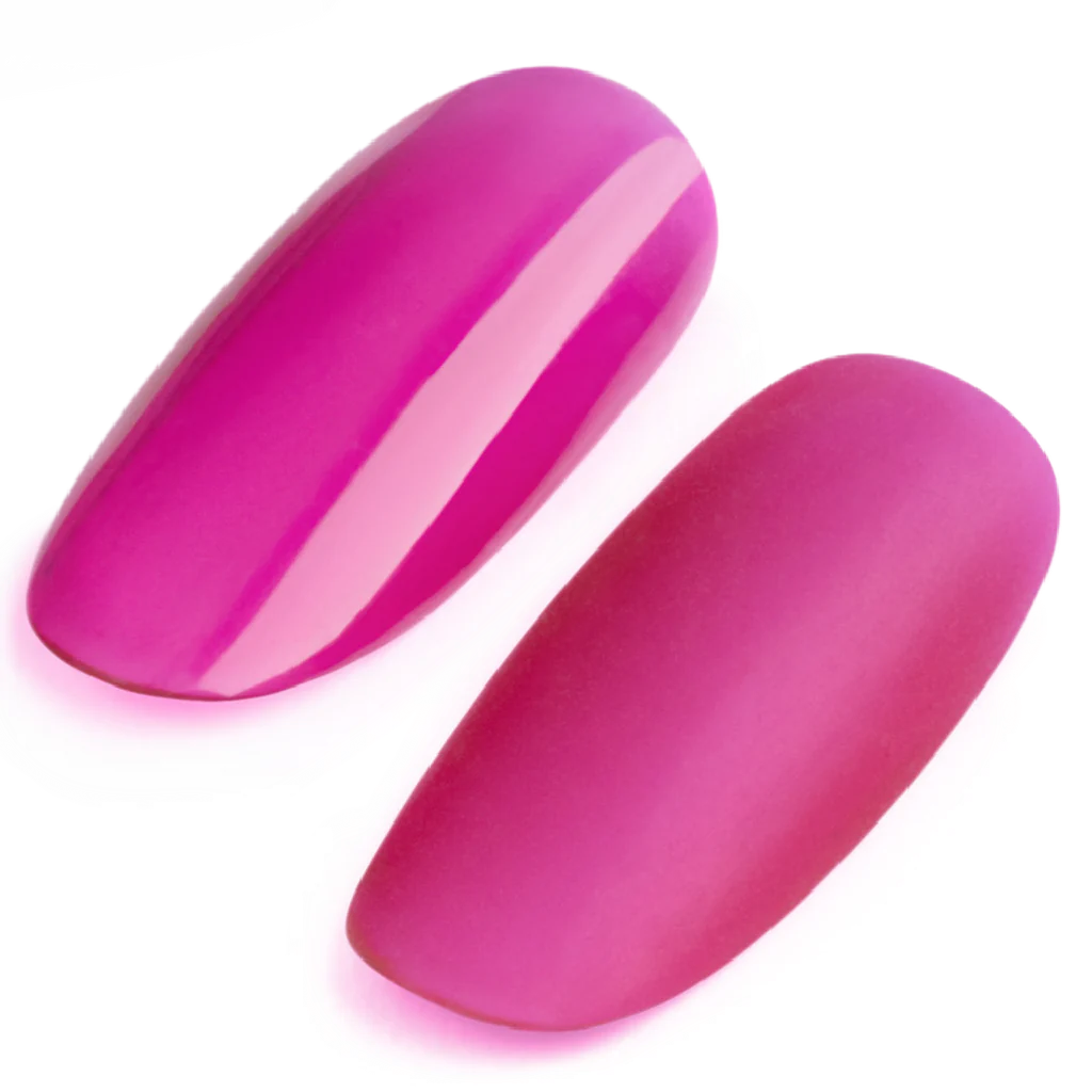 Each tip pictured has 2 coats of gel polish. One is topped with our No Wipe, and one is topped with our award winning Matte!