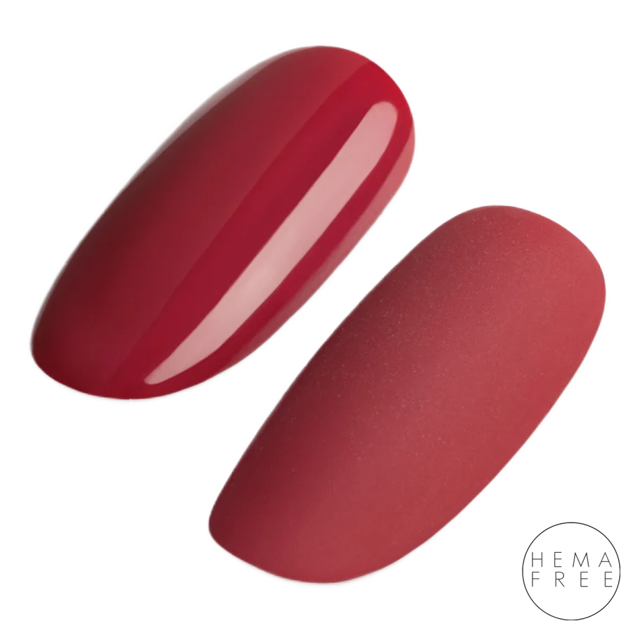 Each tip pictured has 2 coats of gel polish. One is topped with our No Wipe, and one is topped with our award winning Matte!
