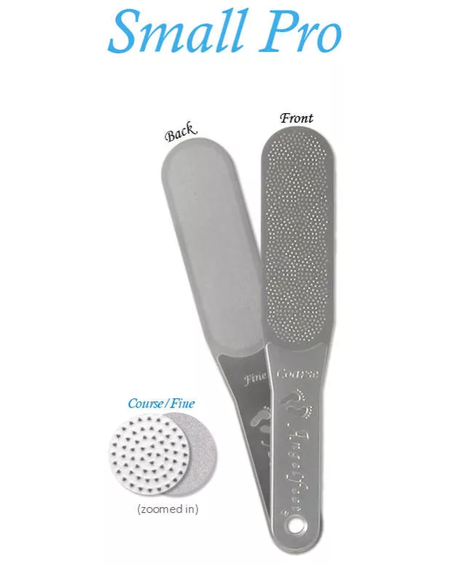 Available as a double sided file, and has a wide surface. One side is for hard and dry calloused skin. The other side is for softer skin that just needs a light smoothing.