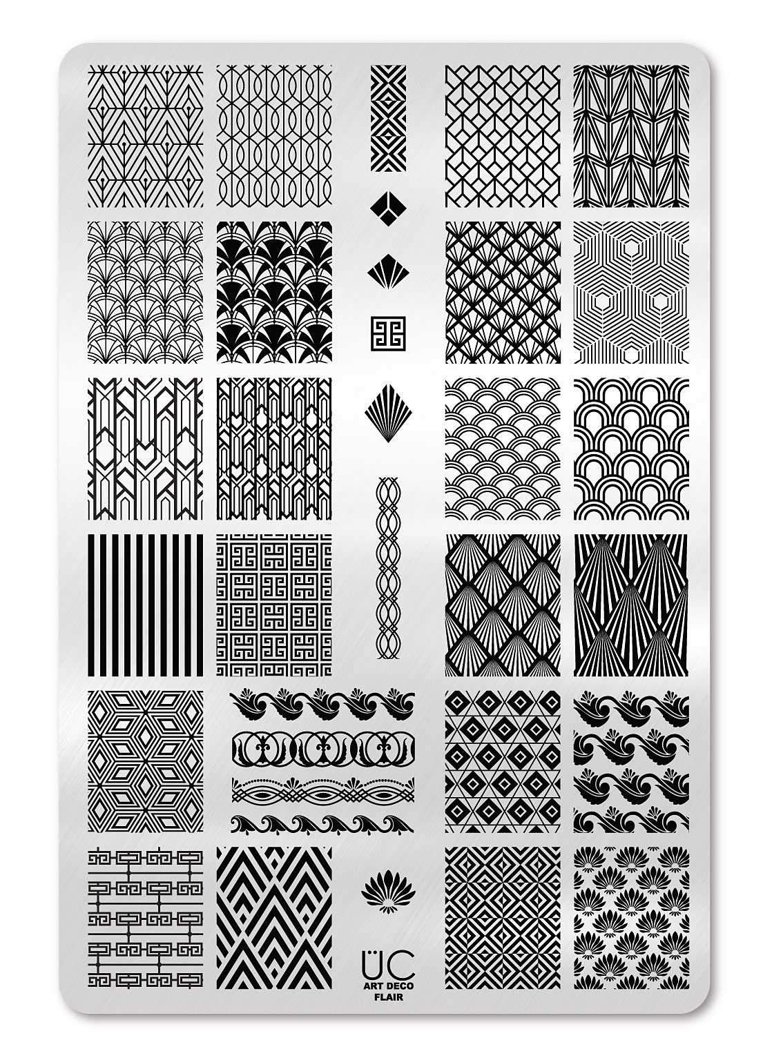 One of our most elegant, sure to delight even the most conservative clients. Straight out of the classic 1920s - our decadent new plate has all the patterns that have inspired centuries of design! These designs are great to use on their own to add some flair to your mani or as a subtle backdrop to class up any stamped mani!
