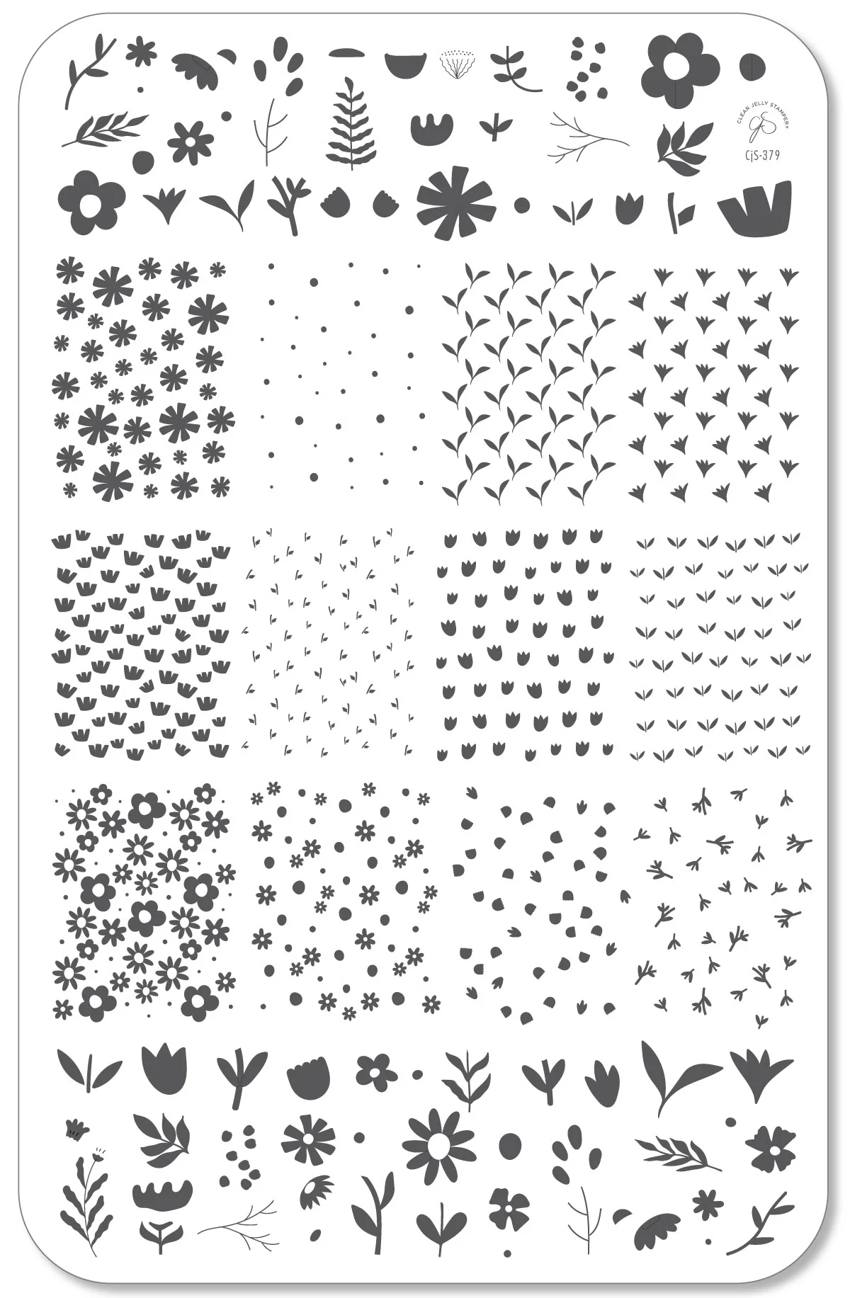 Let your nails blossom with this cheerful and charming layered stamping plate! Packed with playful petals, blooming tulips, daisies, and leafy accents, this plate brings a garden of cuteness right to your fingertips. Featuring both full-coverage floral patterns and adorable cartoon-style blossoms, it's perfect for creating sweet, spring-inspired looks or adding a pop of flower power any time of year.