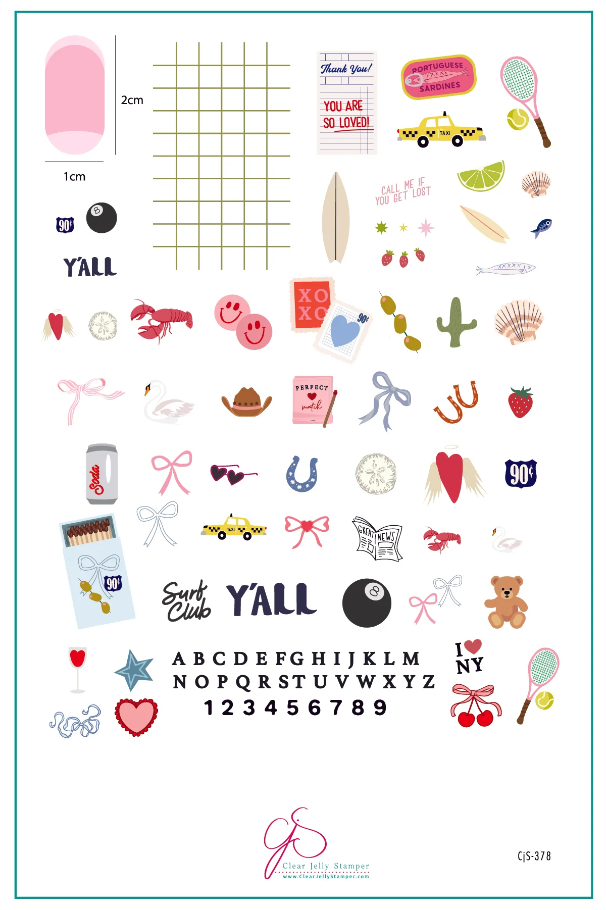 Get ready for an eclectic adventure with CJS-378 Call Me If You Get Lost! This layered stamping plate is a mix of playful, unexpected designs that make a bold statement. From sardines and lobsters to lime wedges, tennis racquets, and bows, this plate brings together quirky elements that are both fun and fashion-forward. Whether you're in the mood for coastal vibes, sporty chic, or a splash of randomness, this plate has something for every creative mind. Layer your designs, mix and match, and create nail art that’s truly unique!