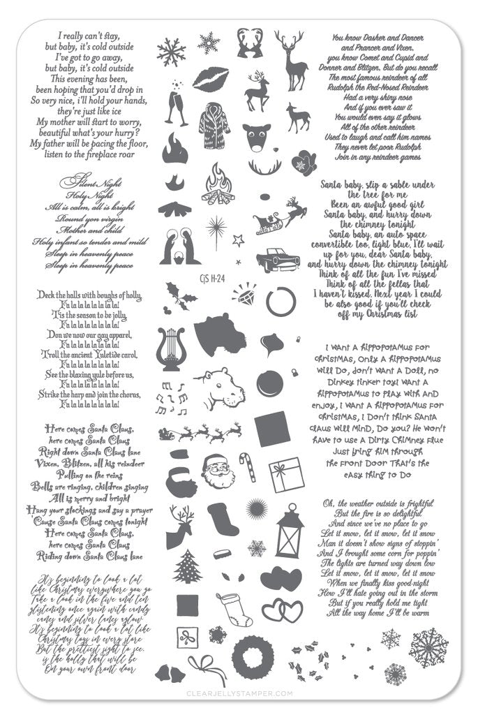 Baby it's Cold Outside, Silent Night, Deck the Halls, Here Comes Santa Clause, It's Beginning to Look a Lot Like Christmas, Rudolf The Red Nosed Reindeer, Santa Baby, I want a Hippopotamus For Christmas and... Let it Snow!