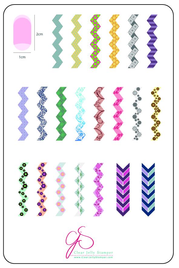 We have taken the classic Chevron and spiced it up a little! Lay down your base colour and then layer details over top! Don't forget to check out the other TWO corresponding plates for full coverage versions with components deconstructed! Create full coverage versions of your Chevron detail... uses larger pieces of the deconstructed images! ENDLESS possibilities!