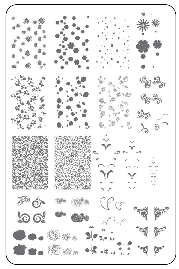 The swirly and flowery components from the Chantel's Chevrons plate deconstructed for endless possibilities!