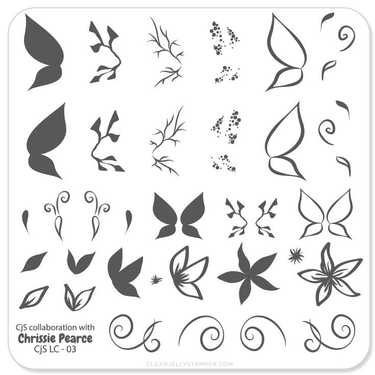 Collaboration Plate with the lovely Chrissie Pearce at nail.supplies, the Clear Jelly Stamping distributor in the UK! Gorgeous butterflies with details to make it your own & swirls to complete the look!