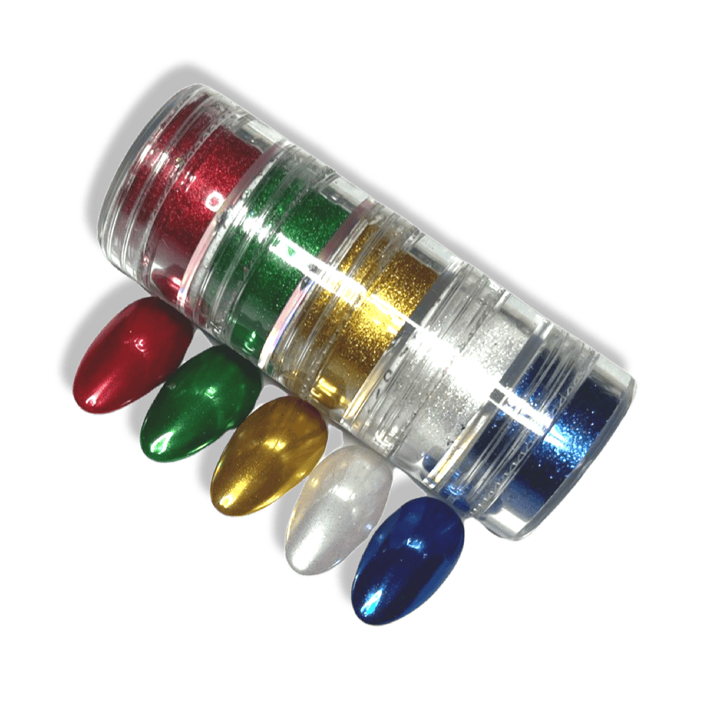 Chrome Powder True Red, True Green, True Gold, Glazed Donut, Midnight Blue.