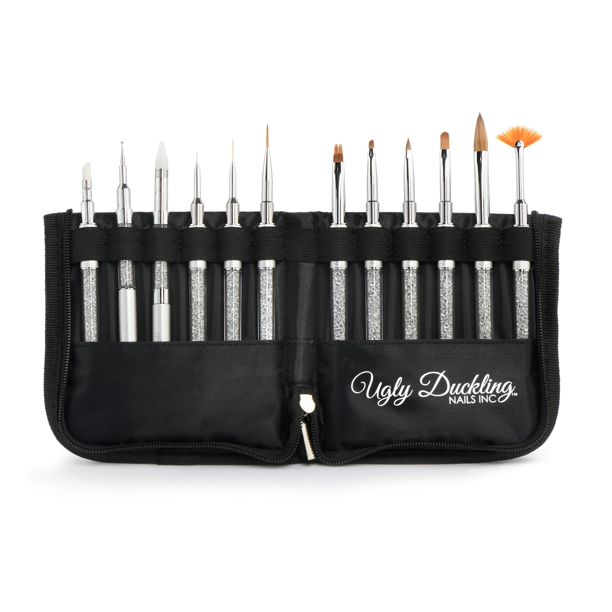 Now with a blingy zipper! Keep your brushes safe and clean with our nylon zippered case. Holds 12 of your favourite brushes. Great for travel, or just everyday storage. Fold over and pull the drawstring to transform it in to a convenient stand.