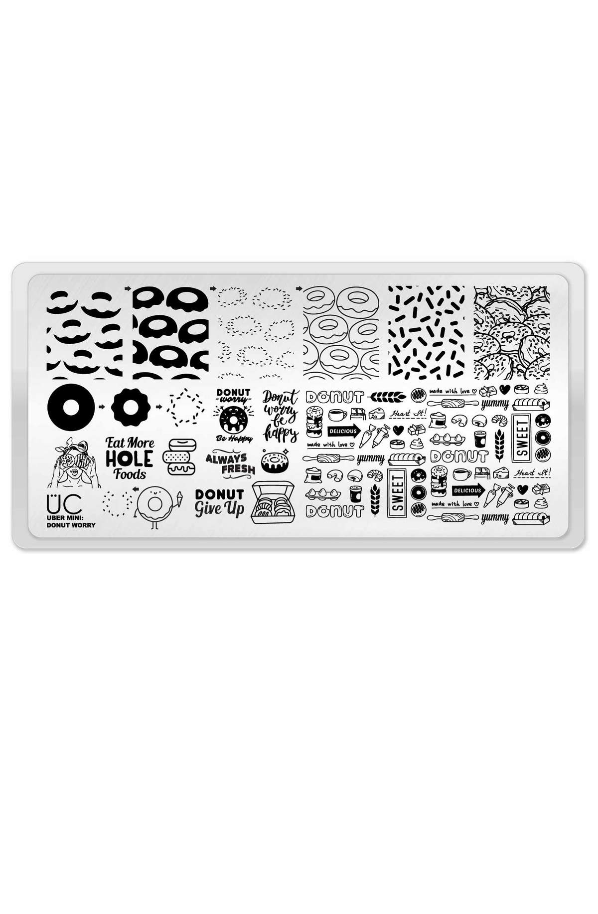 Donut worry…we saved you one with sprinkles! :) Satisfy your sweet tooth with our all-new Donut plate! Morsels of pastry goodness fill our uniquely designed new mini and many come with layers so you can make your savory mani sprinkle to life! It’s also filled with sayings like “Donut Worry, Be Happy”, “Donut Give Up”, “Eat more HOLE foods”, and more!