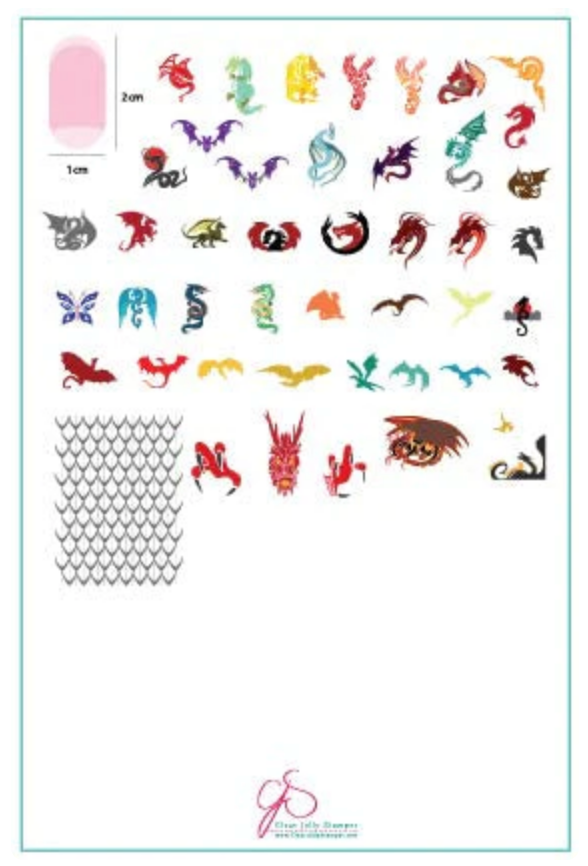Dragons of many shapes and sizes... all layered for maximum creativity! Includes a full coverage layered dragon scale to set the backdrop for an epic dragon mani!