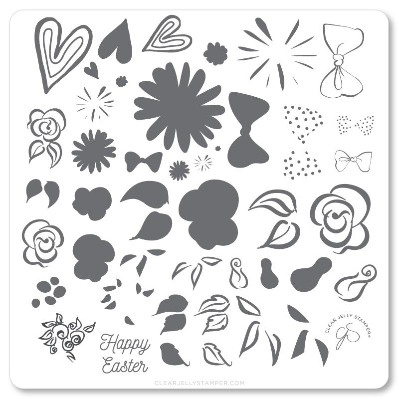 Why save stamping for nails alone? We designed this plate with decorating easter eggs in mind! Eggs... mugs... glasses... what else can you think of to decorate with your CjS goodies? Just remember, you are stamping with nail polish. Only stamp on items you can safely use solvent on should you wish to one day remove your designs!