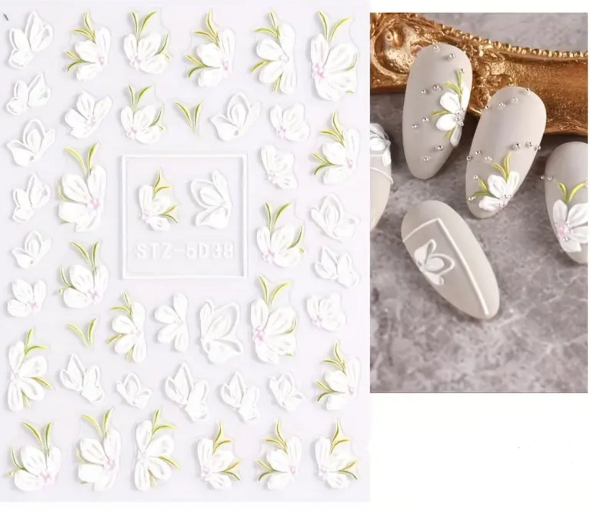 Laser cut. Thin, flexible and stretchy magical nail decals with adhesive on back.