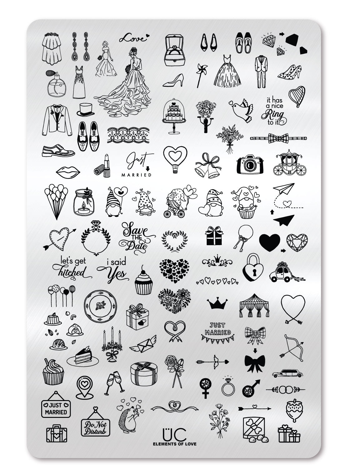 Need the perfect accent for that romantic look you’re making? Look no further! Our all-new plate has everything you need to proclaim your love in absolute one-of-a-kind style! We’ve even included sayings like: “Save the Date”, “I said yes”, “Let’s get hitched”, “It has a nice Ring to it” and more! Whether you’re just getting married, engaged, or have the world’s longest relationship - we’ve got the elements of love for you! Also…did we mention this plate has some lovable gnomes?!
