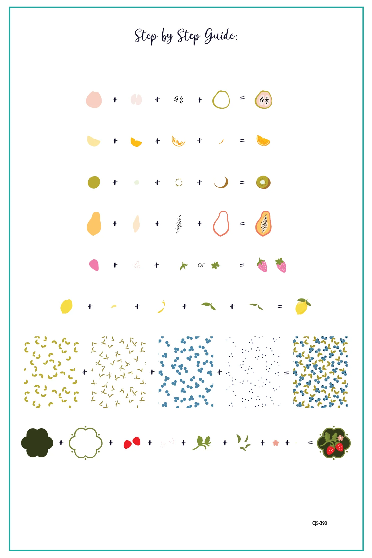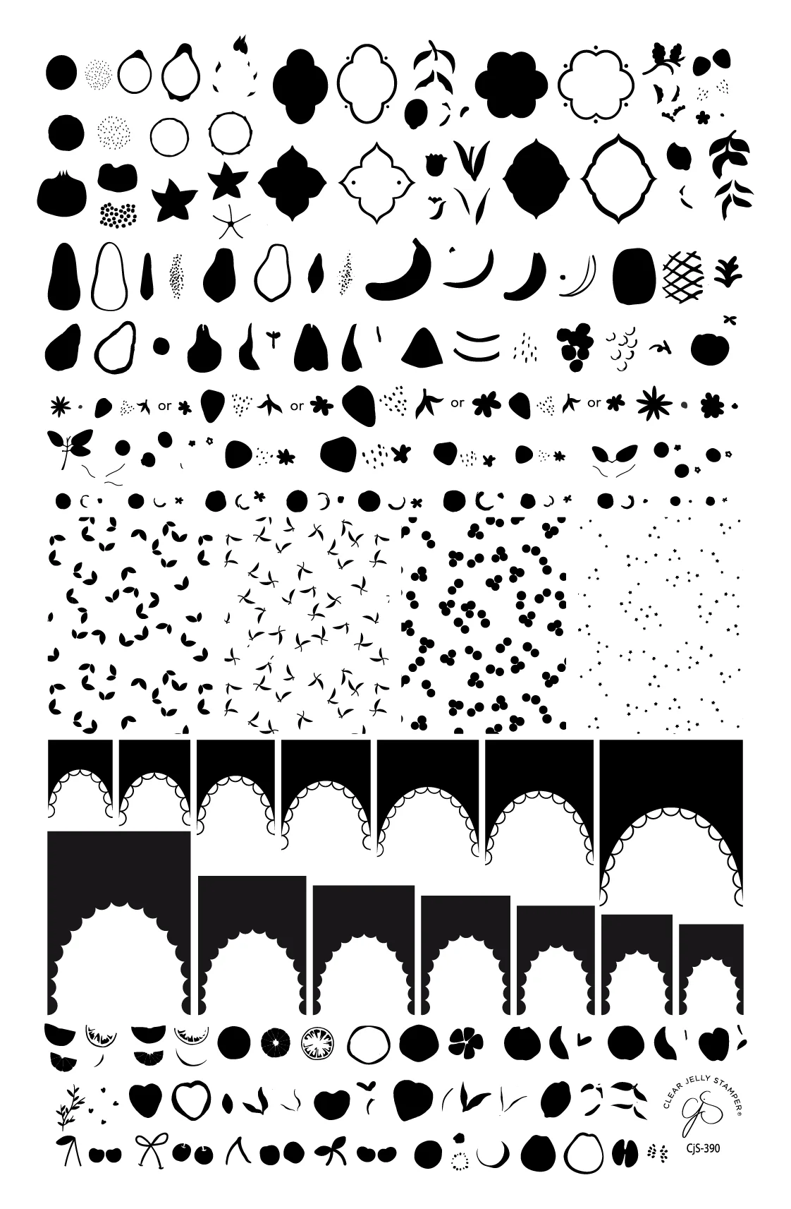 Frilly Fruit features dainty fruit designs paired with a variety of frilly borders to frame your fruity creations just right. Mix and match apples, lemons, berries, and more with scalloped edges and decorative trims for a look that’s as sweet as summer pie! Perfect for playful, pretty nail art with a twist of charm. 🍒✨
