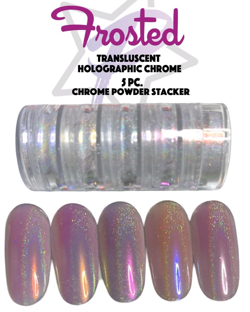 The frosted chrome collection features an assortment of chrome powders that have a beautiful holographic twinkle!