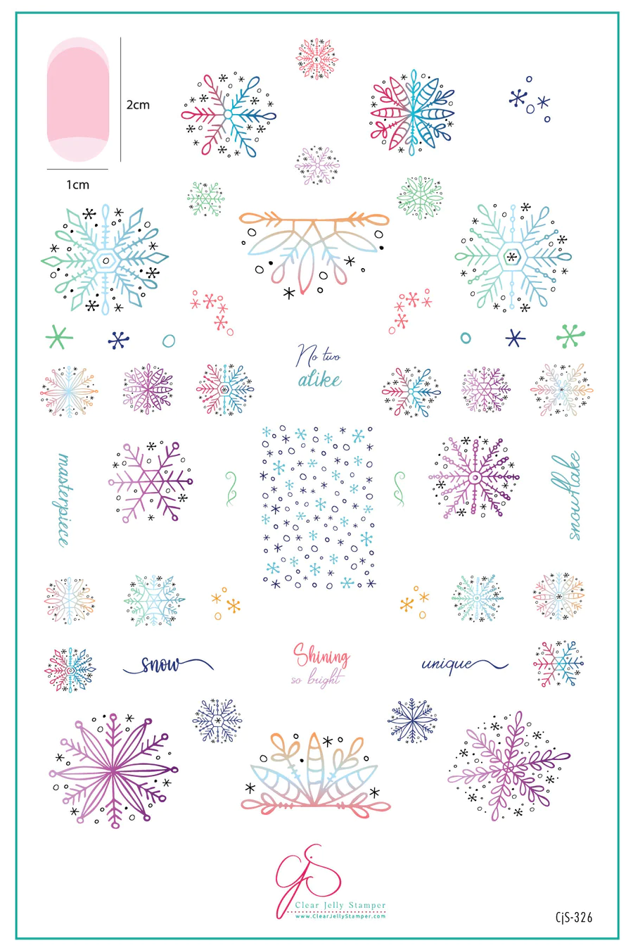 Introducing the Clear Jelly Stamper CjS-326 Frosted Flurries Steel Nail Art Layered Stamping Plate: a true wintertime masterpiece that will elevate your nail art to the next level.