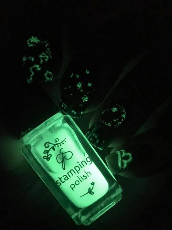 We designed this polish to use in almost an invisible way! We didn’t want to have to use odd colors to create a design you would look at all day, just to be able to have parts of it Glow in the dark! So, this product is designed to layer over other colors and remain virtually invisible until it is charged (light source-led is great) and the lights go out!