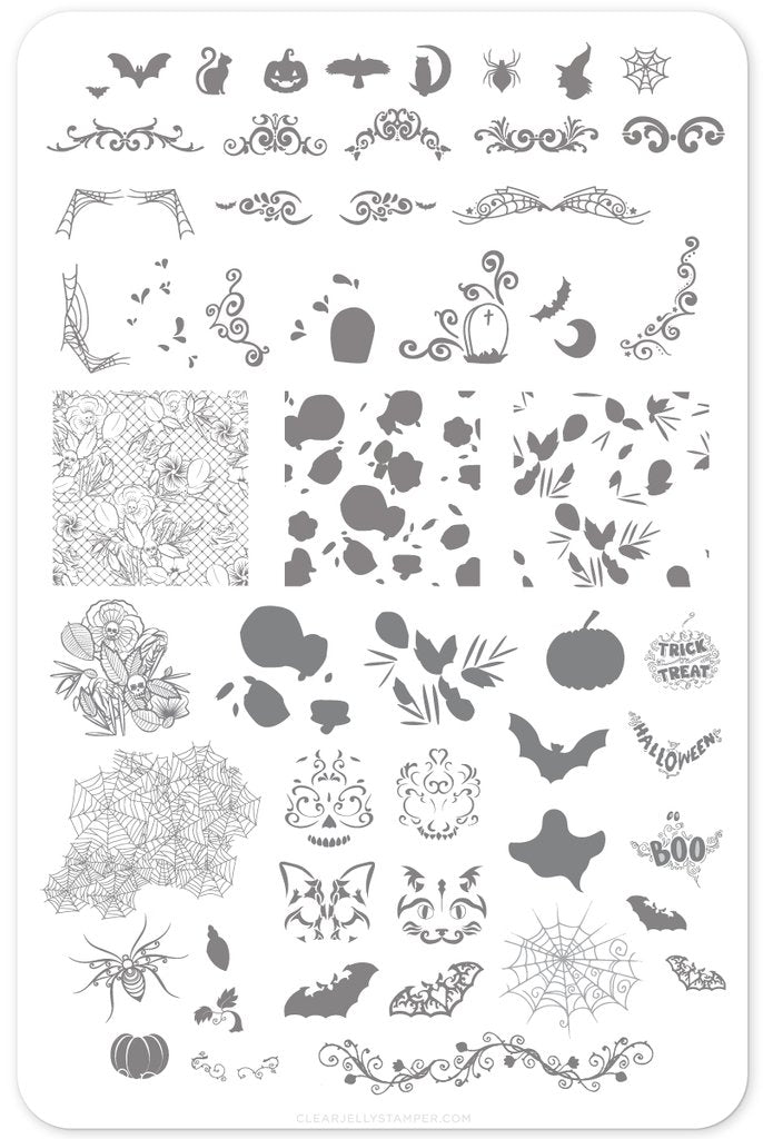 Swirls & Tombstones... of course! Swirly spiders with matching webs...