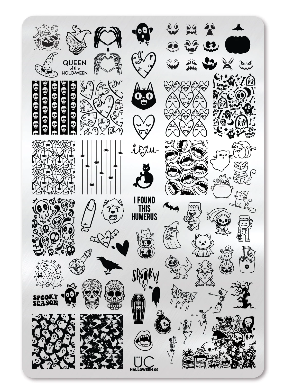 The size of this plate is 9.5 cm by 14.5 cm and it has coordinating single images down the center and a few on the sides. Most designs are 17 mm x 21 mm and are built to cover edge-to-edge on even the largest natural nail size. Small nails left out? Never! Our designs are crafted to not be so overwhelming or large that you can't see what is on your nail - even if it's tiny!