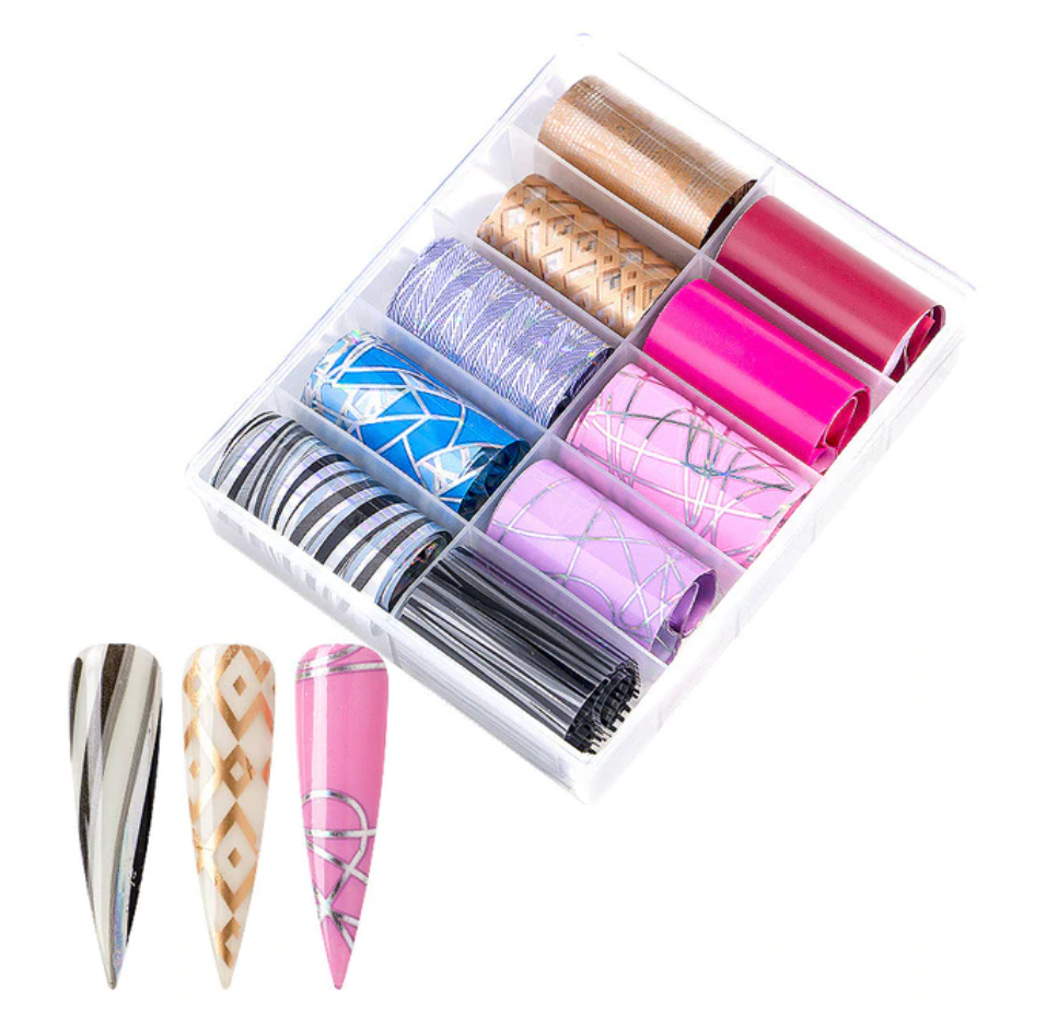 Quick Stick It is amazing!! Apply, Cure 30 seconds. Wipe with alcohol. Let dry for a few seconds. Rub your design on. File the edges then top coat.