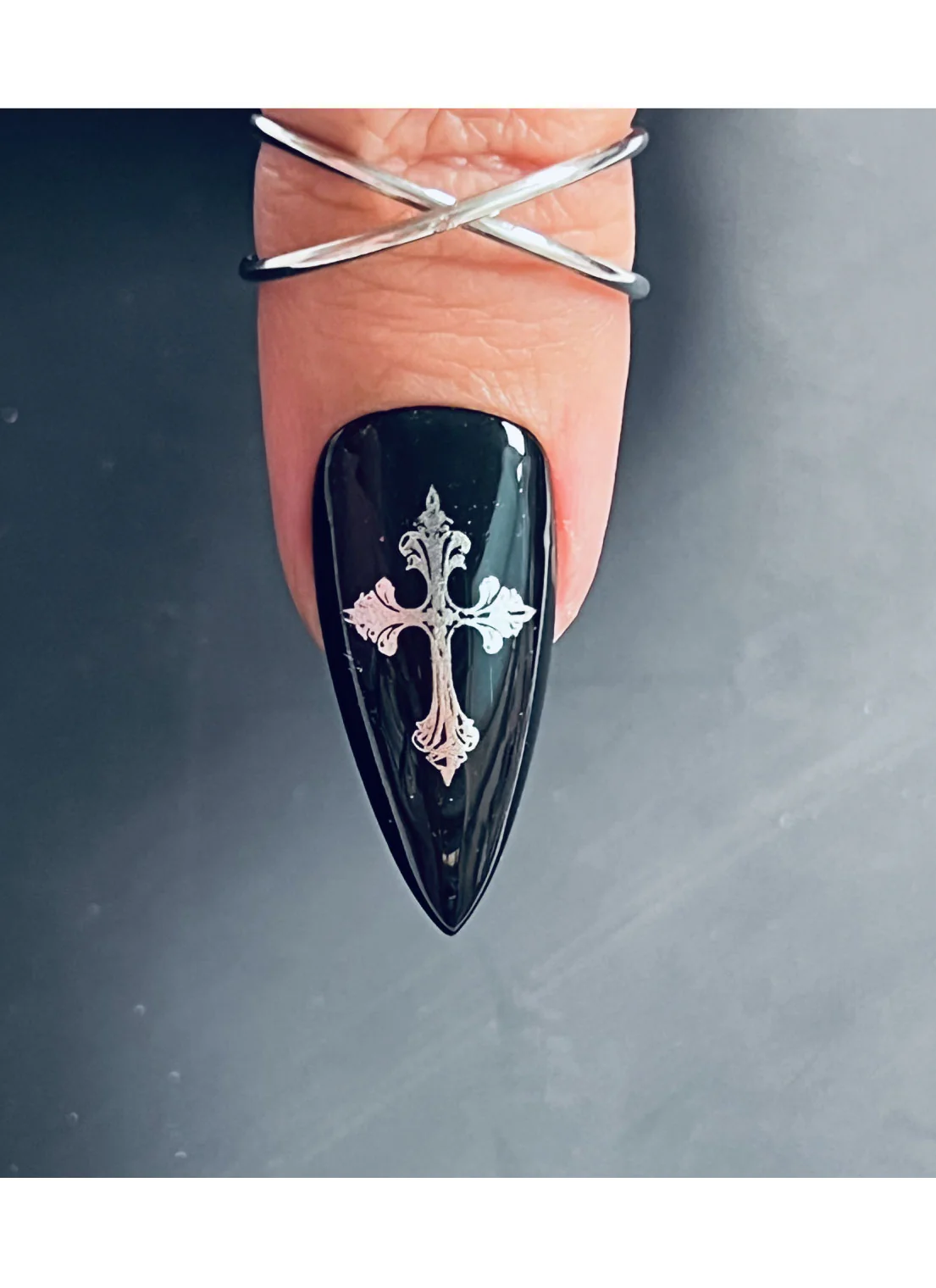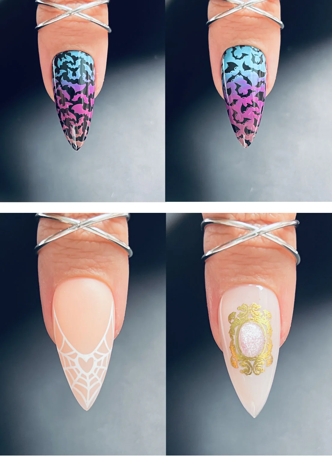 This plate is 9.5 cm by 14.5 cm and has coordinating single images down the center and a few on the sides. Most designs are 17 mm x 21 mm and are built to cover edge-to-edge on even the largest natural nail size. Are small nails left out? Never! Our designs are crafted to not be so overwhelming or large that you can't see what is on your nail - even if it's tiny!