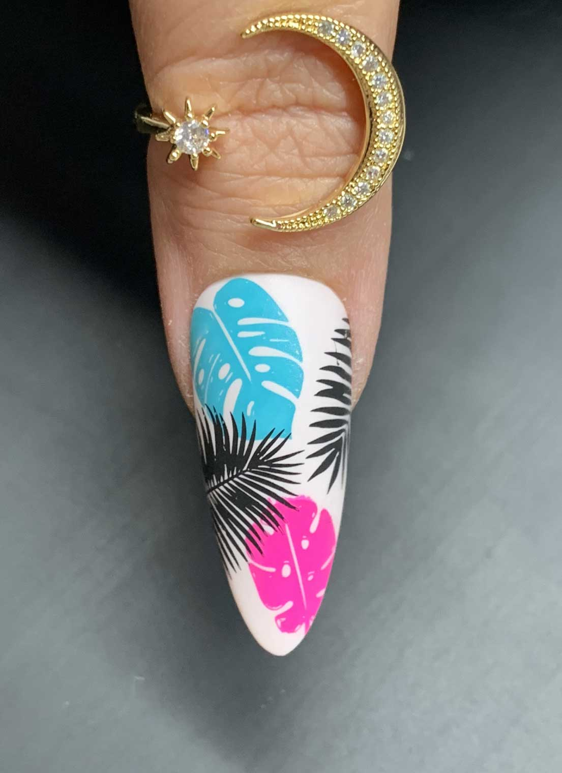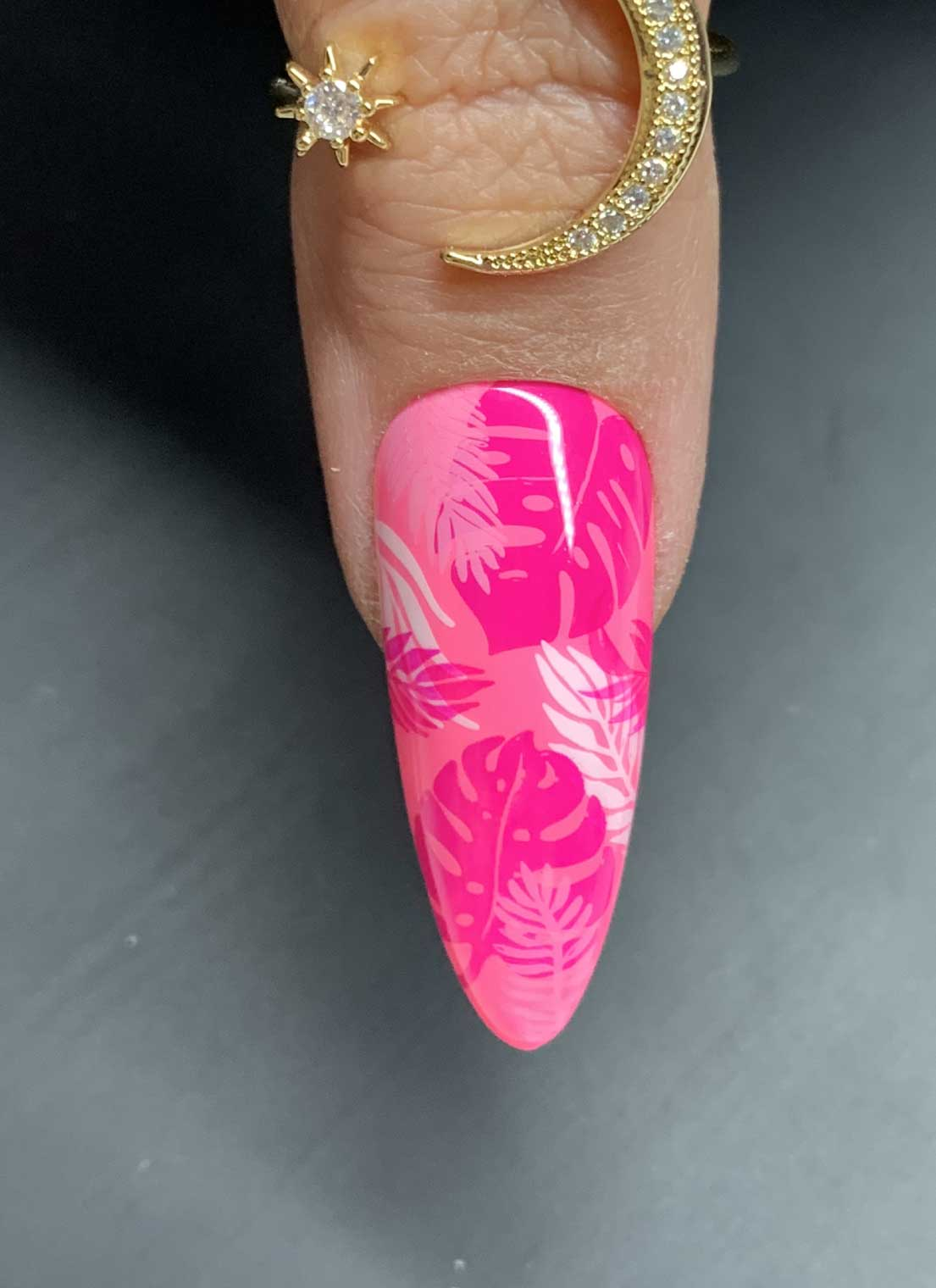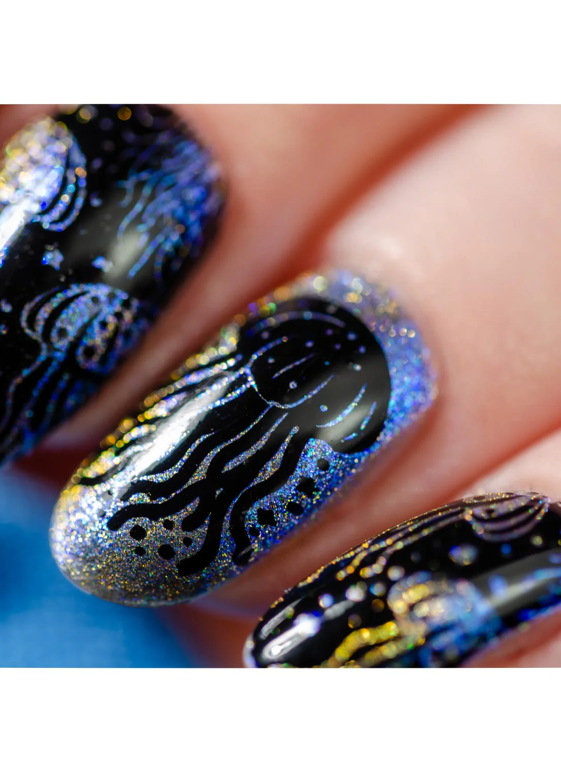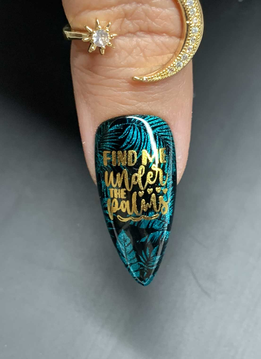 This plate is 9.5 cm by 14.5 cm and has coordinating single images down the center and a few on the sides. Most designs are 17 mm x 21 mm and are built to cover edge-to-edge on even the largest natural nail size. Are small nails left out? Never! Our designs are crafted to not be so overwhelming or large that you can't see what is on your nail - even if it's tiny!