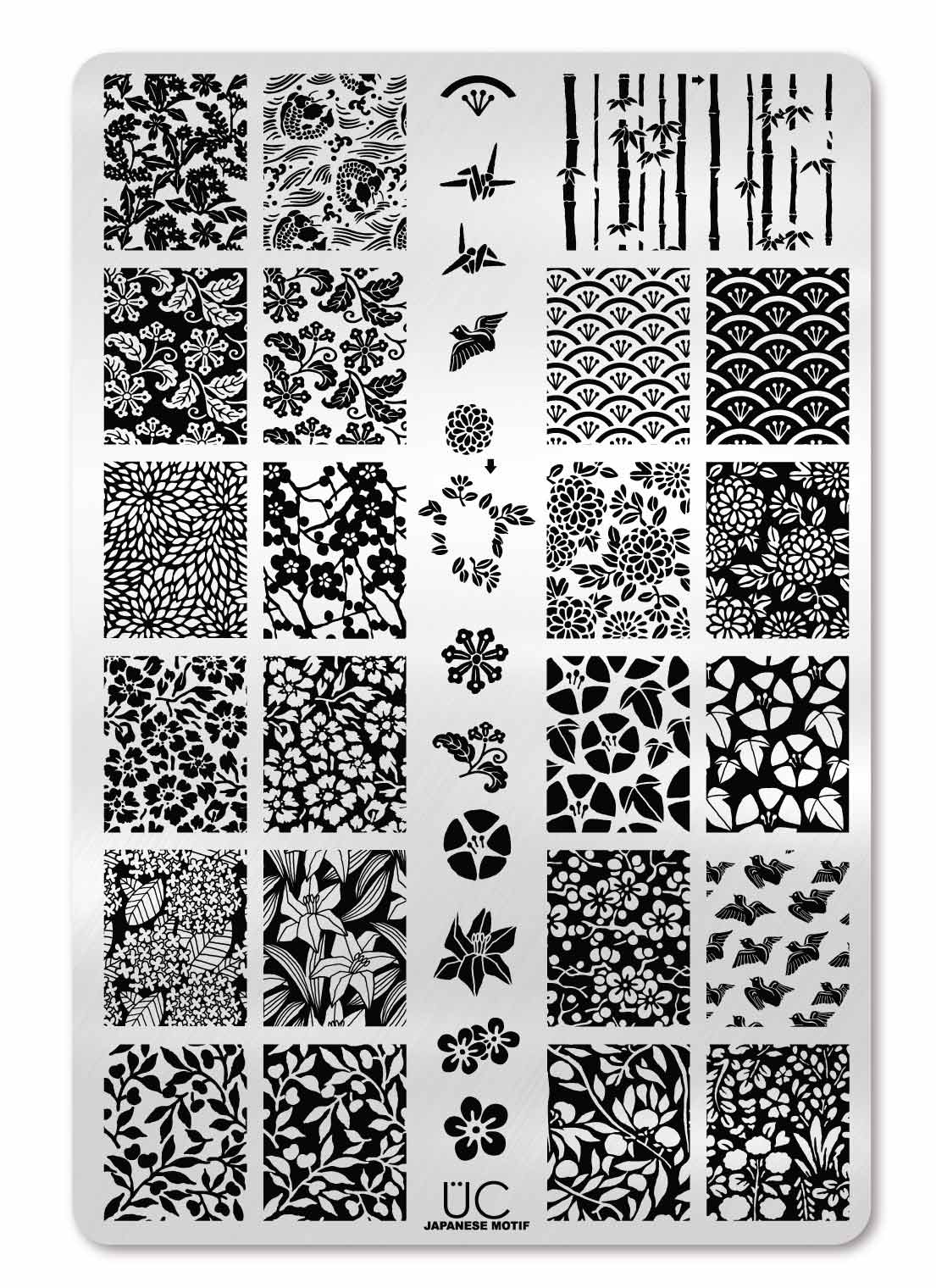 The size of this plate is 9.5 cm by 14.5 cm and it has coordinating single images down the center and a few on the sides. Most designs are 17 mm x 21 mm and are built to cover edge-to-edge on even the largest natural nail size. Small nails left out? Never! Our designs are crafted to not be so overwhelming or large that you can't see what is on your nail - even if it's tiny!