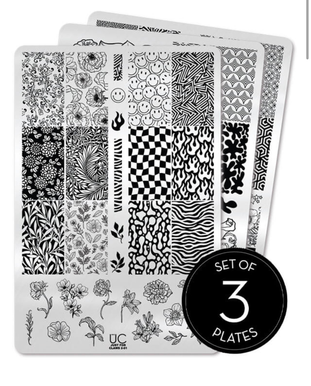 This Collection features three of our unique design plates carefully made to ensure almost any size nail is accommodated, it includes three plates: Claws 2-01, 2-02 and 2-03