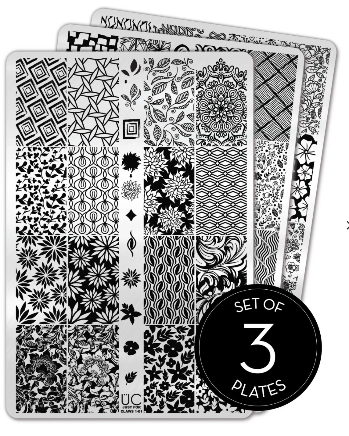 This Collection features three of our unique design plates carefully made to ensure almost any size nail is accommodated, it includes: Just For Claws-01, 02 and 03.