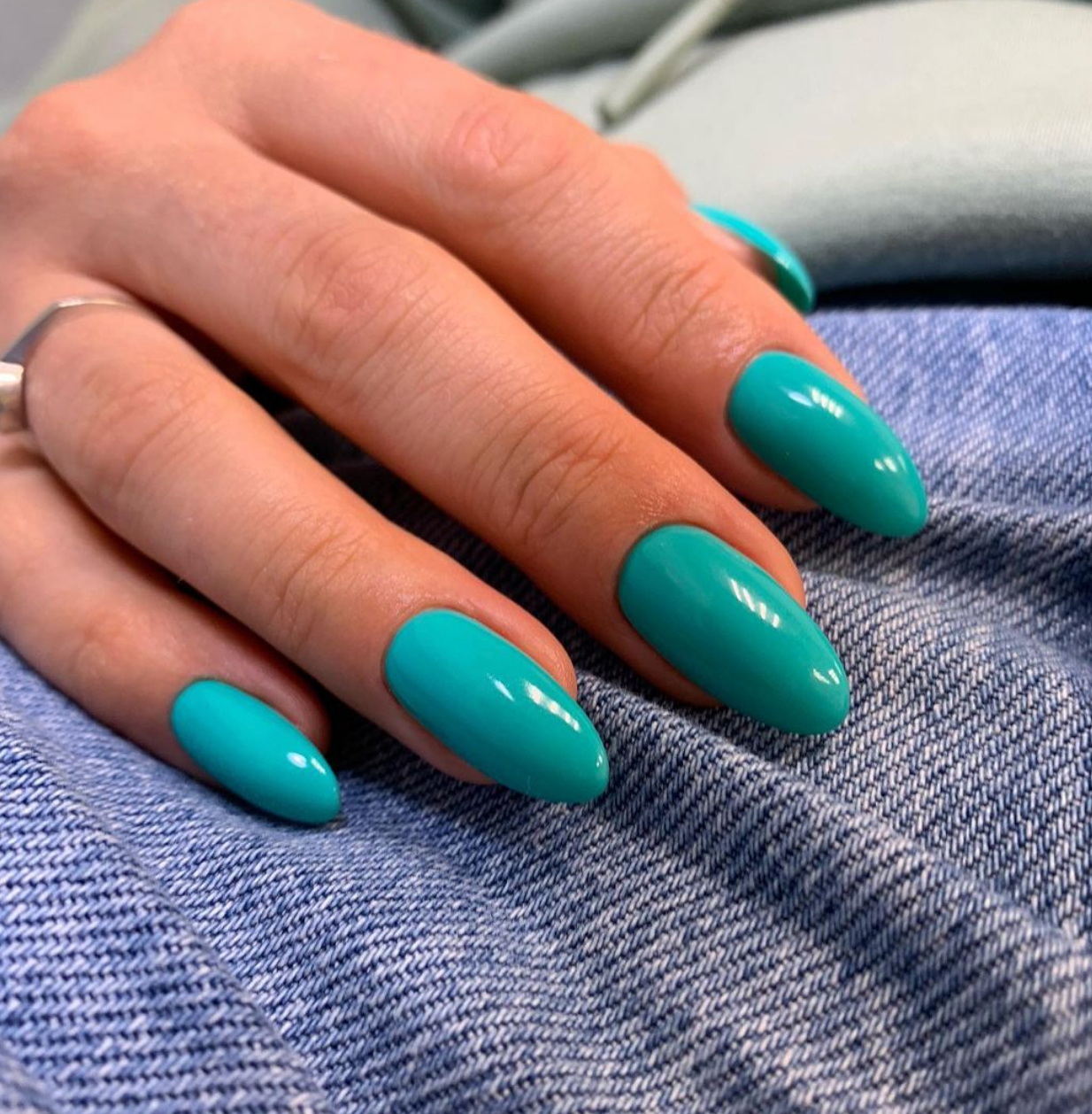 A bold and bright teal with a undertone of blue offering full opacity with each coat.