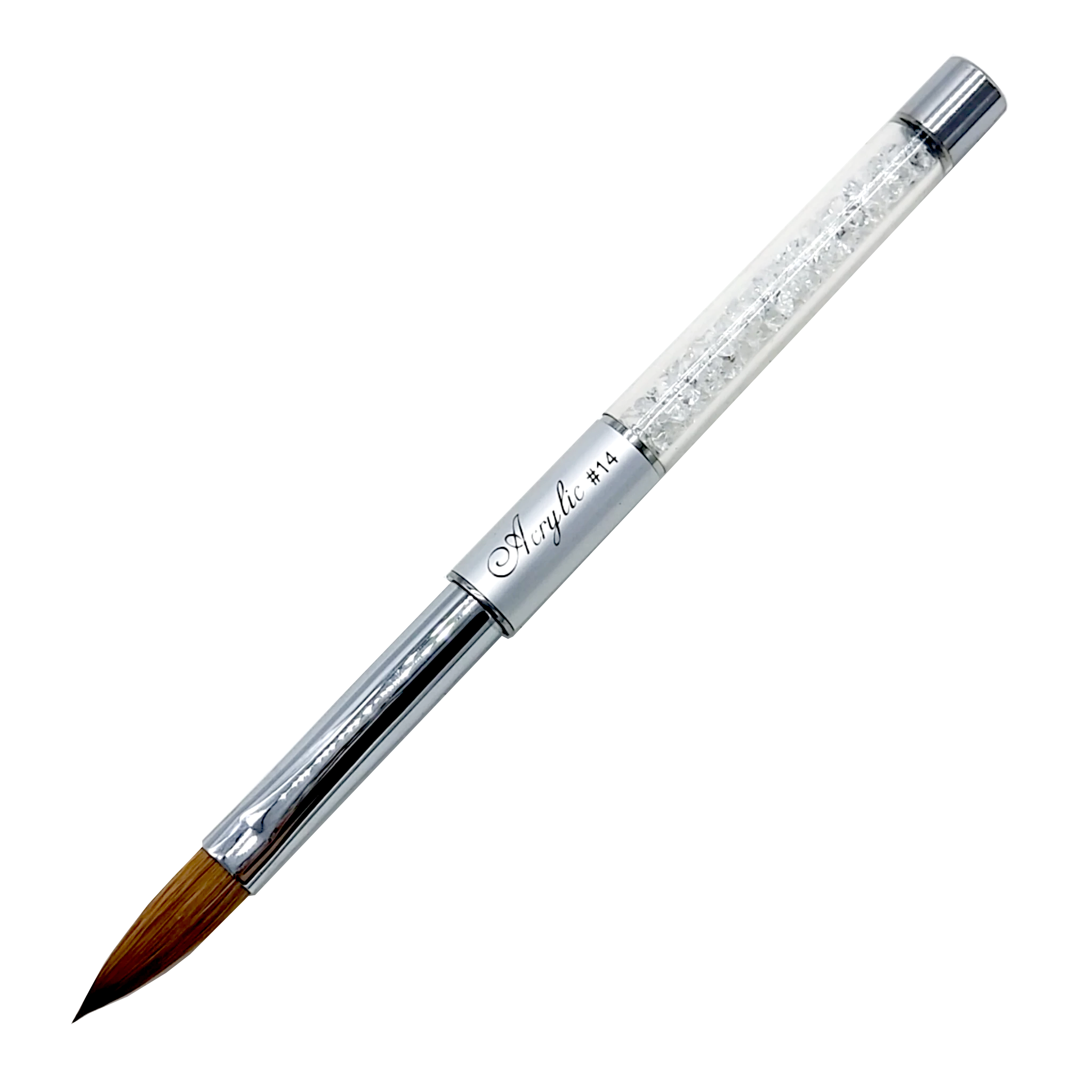 Our Premium Kolinsky Acrylic Brushes are individually hand crafted with the finest Kolinsky Sable available. The beautiful, chemical resistant, genuine crystal handles will dazzle your customers as they sparkle in the light. Brush May have a silver, white or black base