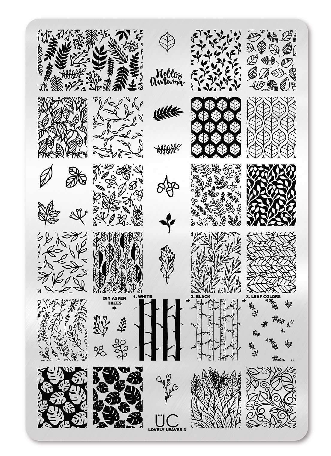 One of our most popular plates is back for round three! We’ve included a wide variety of leaves and even a DIY Aspen Tree stamp! Get you nails ready for sweater weather and the falling of those lovely leaves with our all new plate! From modern to whimsical to even some tropical - this plate has you covered for every leaf-filled season!