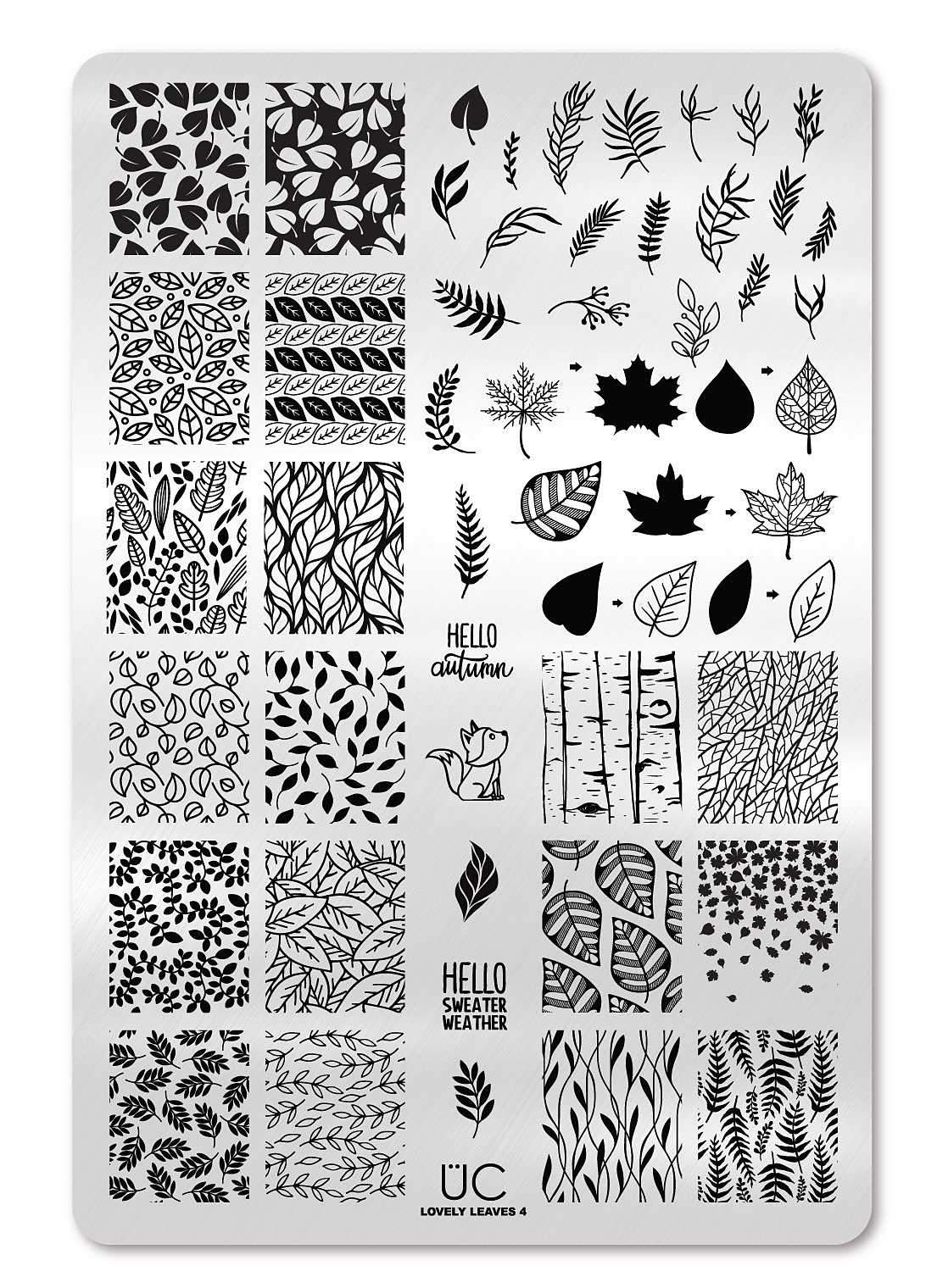 We started the Leaves plates a few years back and have watched the trend grow and grow. Now we've crafted the perfect addition to our Lovely Leaves family with our 4th plate! This one even features a little fox and some fun sayings like "Hello Autumn" and "Hello Sweater Weather". Get cozy, seasonal nails just in time for fall with our NEW plate that even includes some layerable leaves too!
