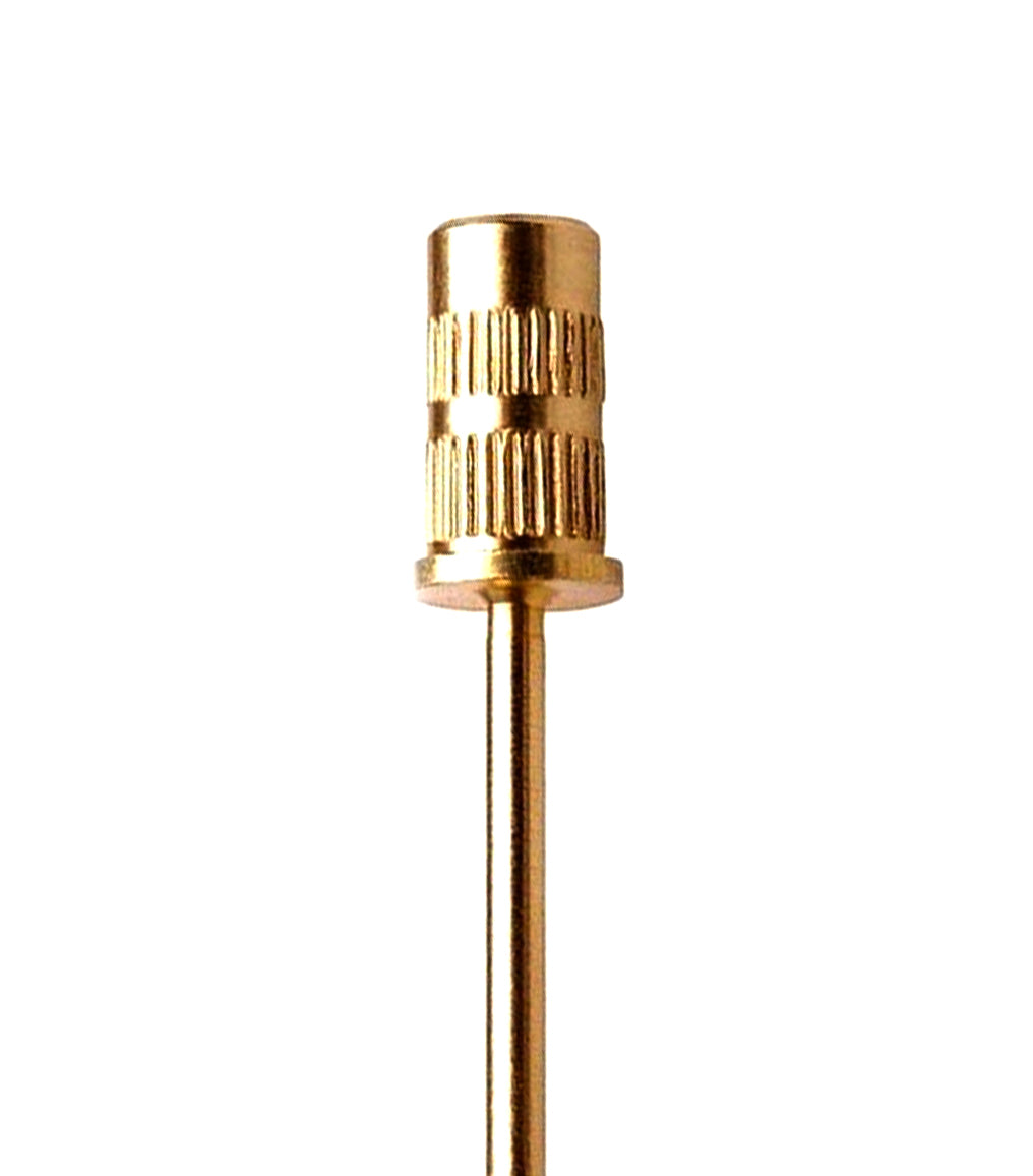 Mandrel- may be brass or stainless depending on inventory. If you are getting a lot of vibration doing nails, your bit might be bent. Mandrels are nice and inexpensive for daily use with fabulous Zebra sanding bands!