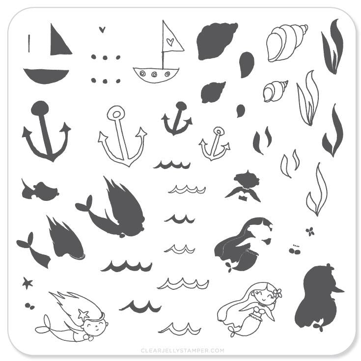 Introducing: Mermaid Doodle #1; which, is a doodling inspired plate that gives the impression of "hand-drawn" artwork. We are creating a series of doodle impressions because we think they're darn cute & fun. Mermaid Doodle #1 is a nautical themed plate featuring: mermaids, ships, ship anchors, ocean waves, sea shells, and sea fauna.