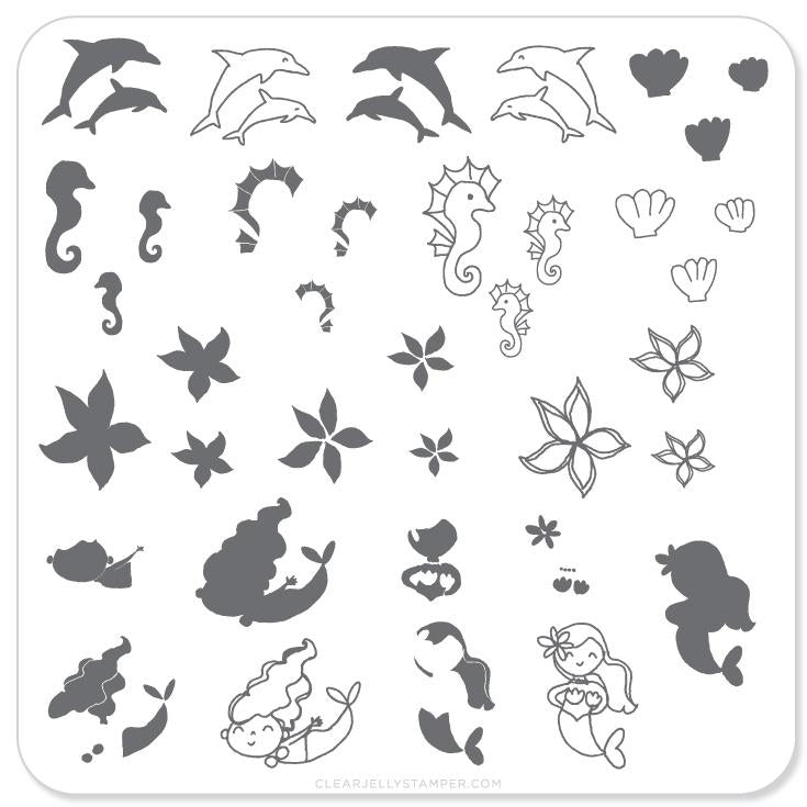 Introducing: Mermaid Doodle #2; which, is a doodling inspired plate that gives the impression of "hand-drawn" artwork. We are creating a series of doodle impressions because we think they're darn cute & fun! . Mermaid Doodle #2 is a nautical themed plate & features; mermaids, dolphins, sea horses sea shells and sea fauna.