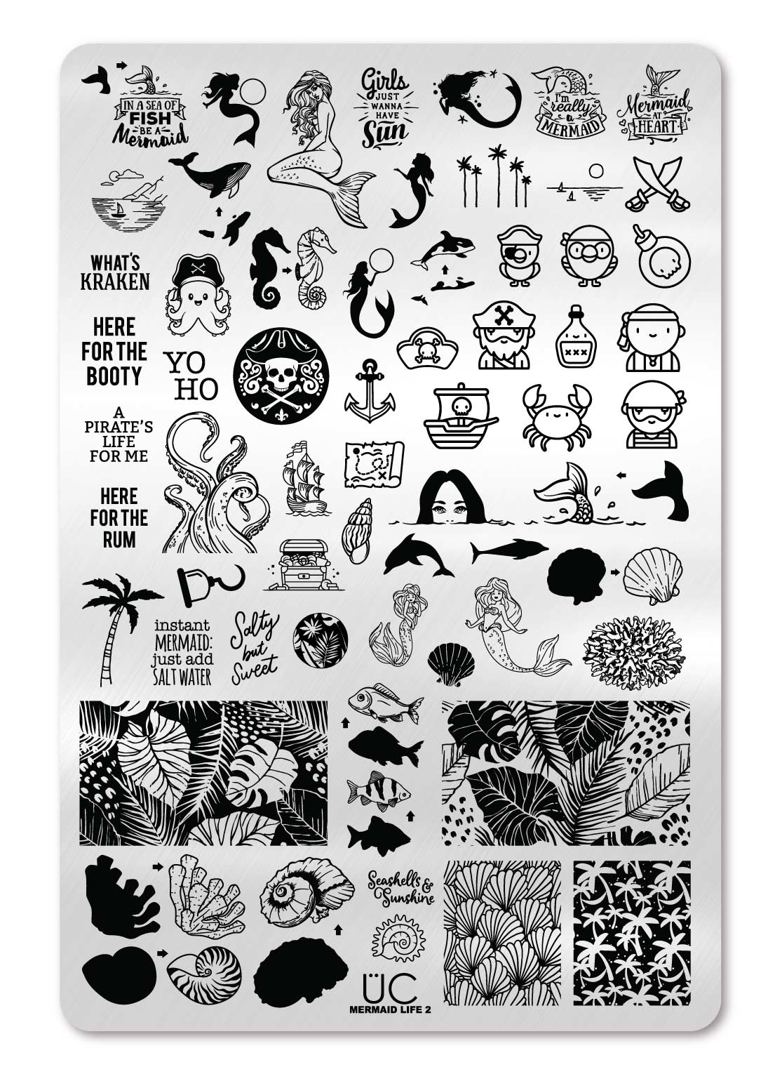 mermaid, mermaid life, in a sea of fish be a mermaid, girls just wanna have sun, I'm really a mermaid, mermaid at heart, seahorse, octopus, what's Kraken, here for the booty, a pirate's life for me, map, treasure map, orcha, parrot, bomb, sword, landscape, sunset, sunrise, palm trees, here for the rum, anchor, crab, pirate, ship, boat, hook, treasure, instant mermaid just add salt water, shell, coral, fish, salty but sweet, tropical, island, coral, conch, seashells and sunshine, layers, layerable, overlapping