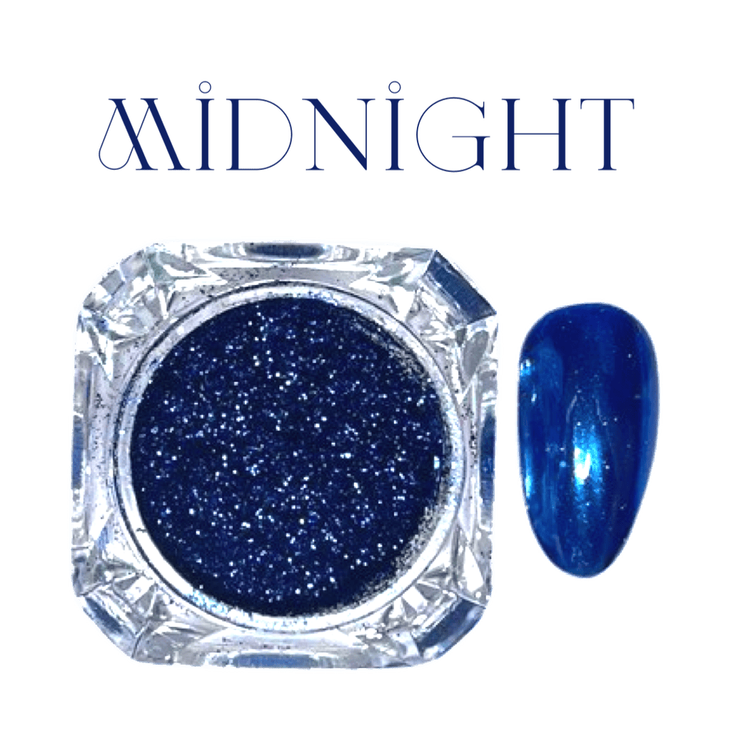 Chrome Powder Midnight Blue, a deep festive blue. Swatched over PF Moonshine Super Polish.