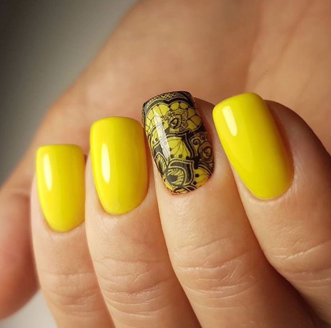Nonstop is a beautiful sunshine yellow. Not quite as bright as Sunburst. Pro Tip - this yellow is VERY pigmented! Apply in thin coats to assure a full cure and no wrinkles.