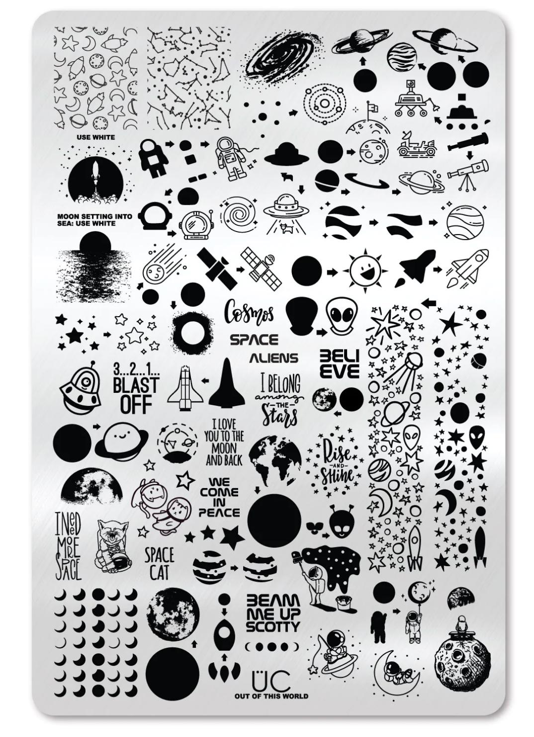 We needed some SPACE! Outer space that is… Our most out of this world plate yet! We’ve got space cats, aliens, planets, stars, moon phases, astronauts, rockets, Earth, cosmos, moons and so much more! Take a trip to the moon and back with our all-new single! Get space-age nail art in a snap! Ready? Beam Me Up, Scotty!