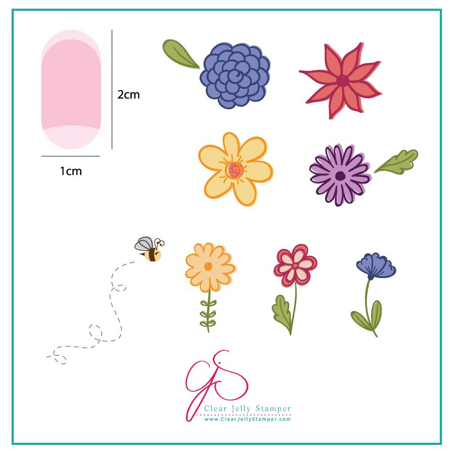 This pretty little plate is full of layered flowers! Some are double layered images and some are triple. All of them... are adorable and will brighten up any mani!