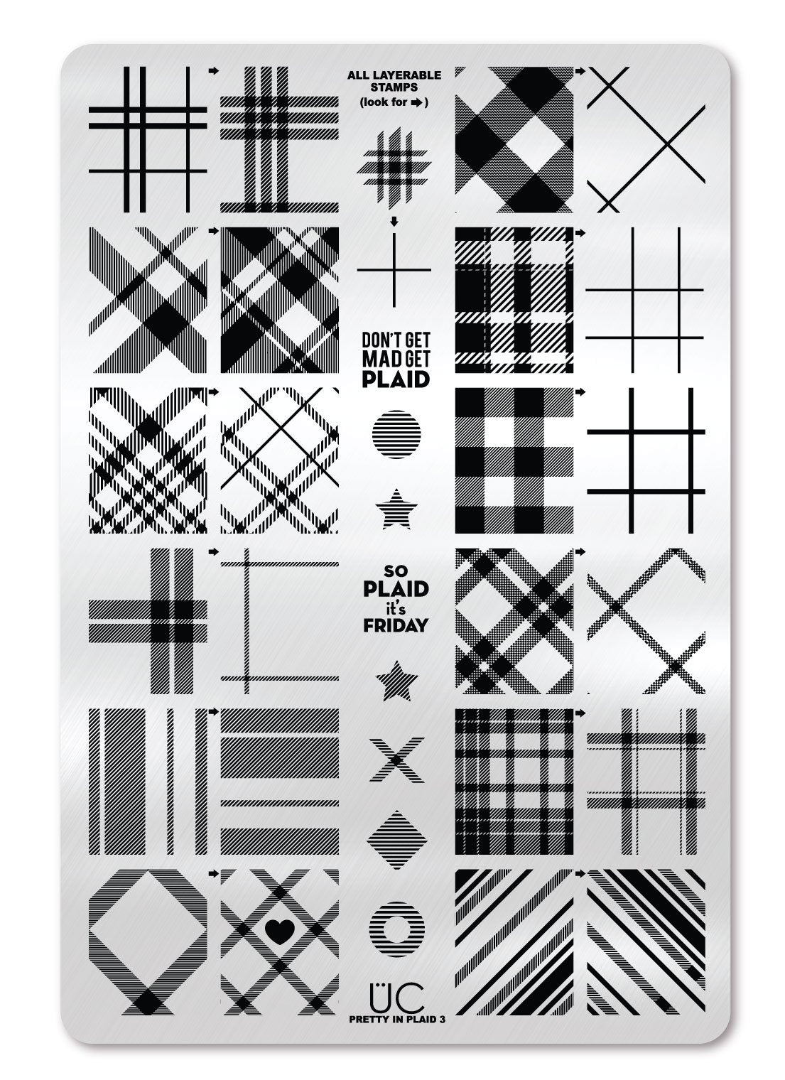 We took your favorite thing from past plaid plates (LAYERS) and made an entire plate of plaid that layers…YAAASS! Every single image on this plate can be layered for a one-of-a-kind plaid mani. This plate will become your instant go-to for superior plaid looks.