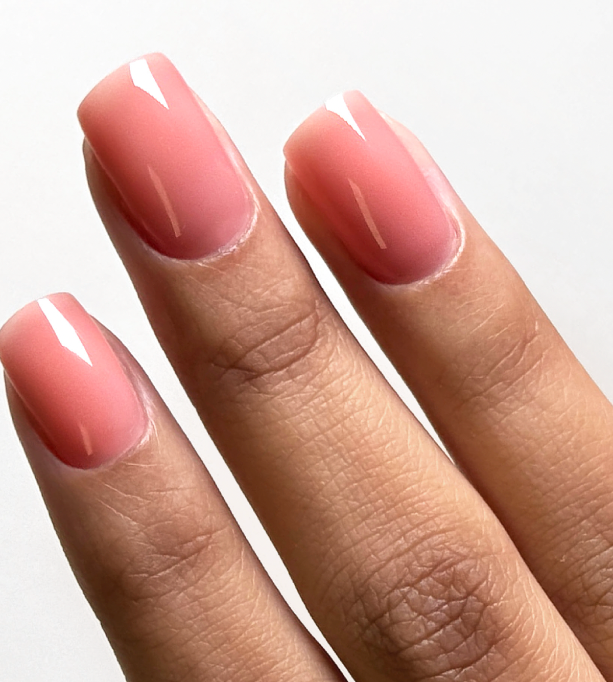 A sun-kissed tint of soft peach-pink, Soleil evokes the gentle warmth of golden light on skin. Sheer and glowing, this radiant shade melts into the nail like the late afternoon sun—subtle, comforting, and quietly luminous.