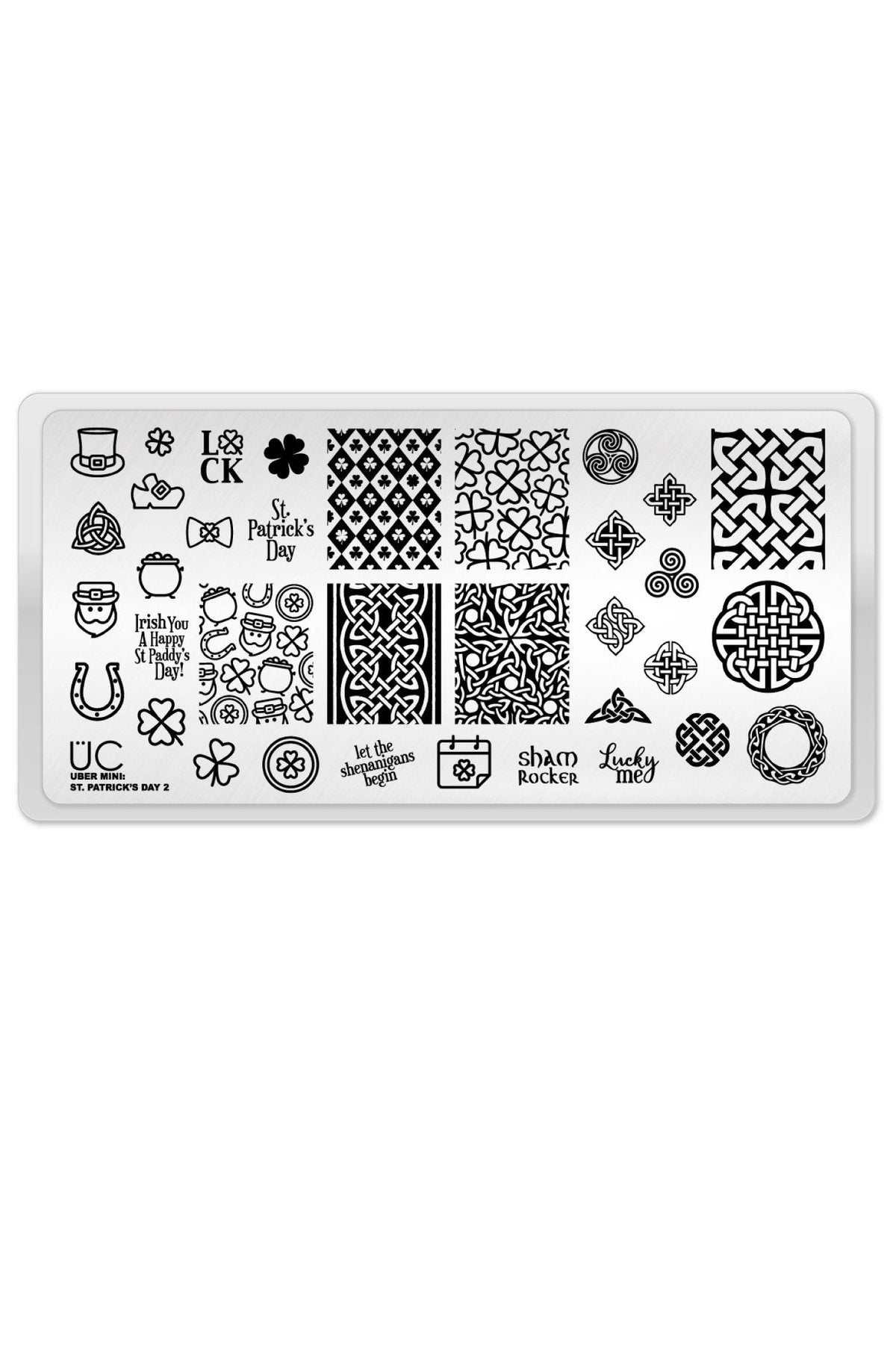 Let the shenanigans begin! It's time to protect yourself from all kinds of pinching this St Patrick's day and rock your nails in true green and gold style! We know how much you loved all the Celtic knots and symbols we included on our original St Patrick's Day plate so we made sure to include even more on this one! We also included sayings like: "Lucky Me", "SHAMRocker", "Irish You a happy St Paddy's day", "Let the shenanigans begin", and more! Our versatile new plate will not only help you with your St Patrick's Day nail art - it doubles as the perfect source for Celtic nail art too!