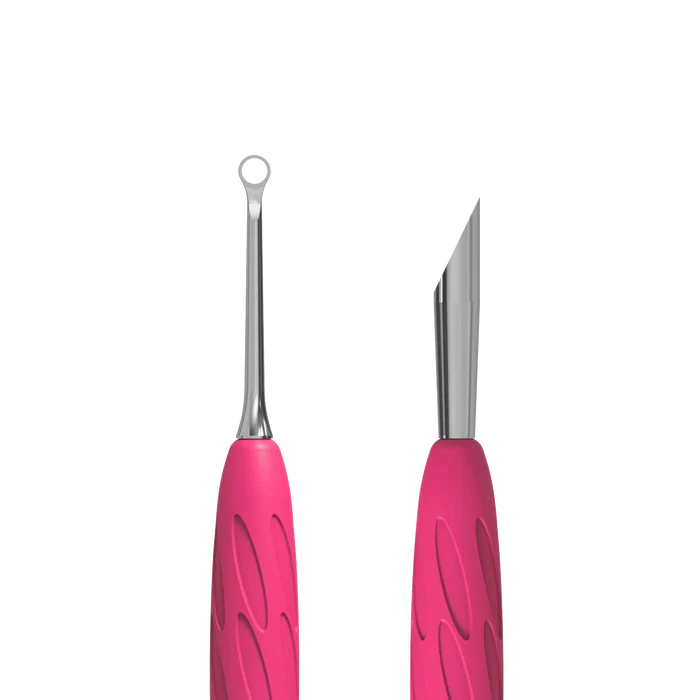 - The working part "slanted pusher" is used for lifting and pushing back the rough and strongly adhering cuticle, clearing the free edge of the nail, removing the gel-lacquer runs.
