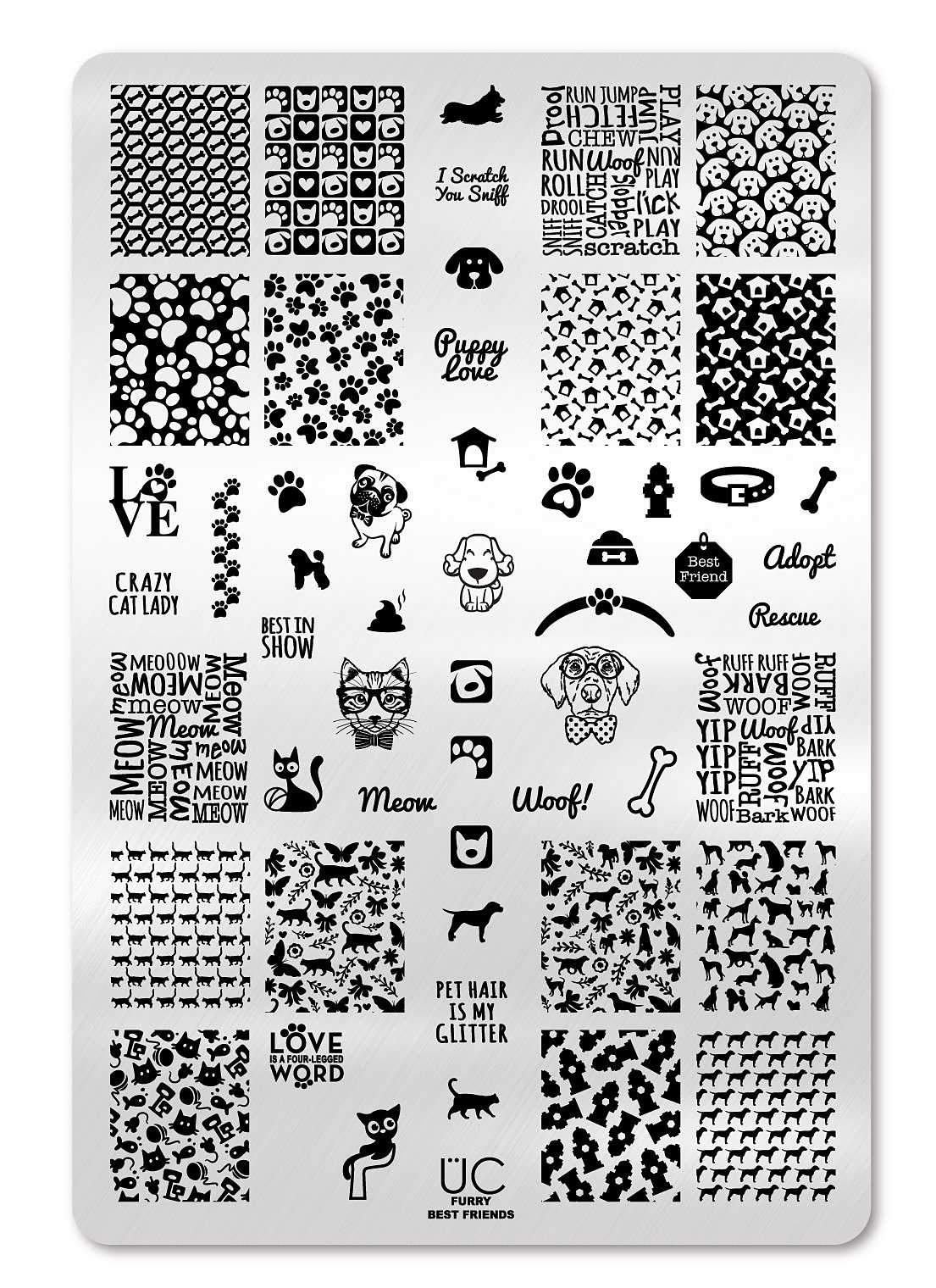 Do you consider pet hair an accessory? Does your house get a little slobbery around meals? Well we have the very best plate that is perfect for any pet lover! Our Furry Best Friends Nail Stamp Plate makes it ok to proclaim that you are in fact the crazy cat lady everyone talks about, that you have conversations with four-legged roommates that rival any other talk you've ever had, that you, in all honesty, truly love your furry beastie. So go on, bust out the lint rollers and make room next to your pooch or purr machine and let your nails proudly own the fact that you love your furry best friend.