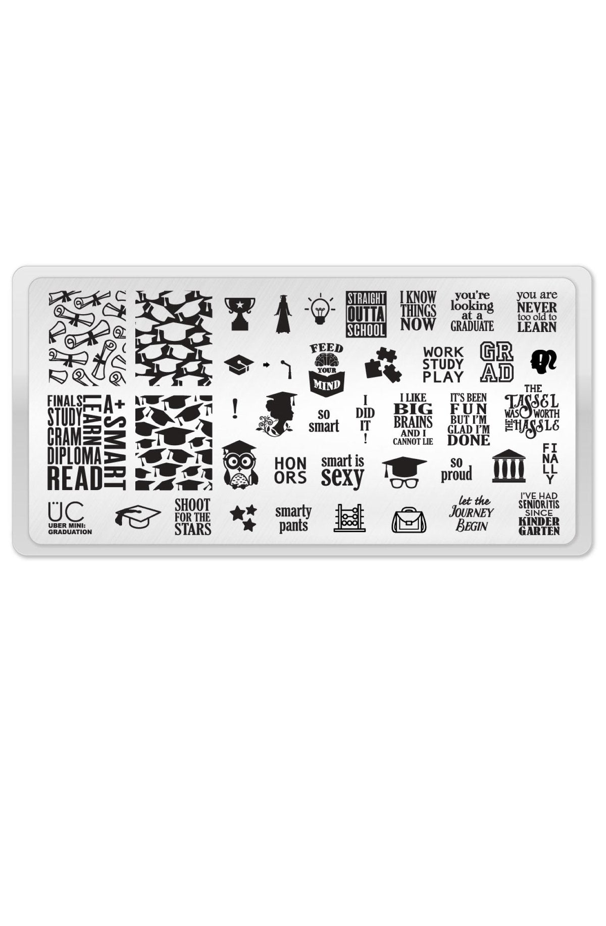 TA-DA! In honor of those very special occasions in life - celebrate milestones in absolute style with this very festive plate! Graduating from something? Did you achieve something great? Show everyone who is the new smarty pants or perfect for parents who are oh-so-proud! Graduation nail art has never been so easy!