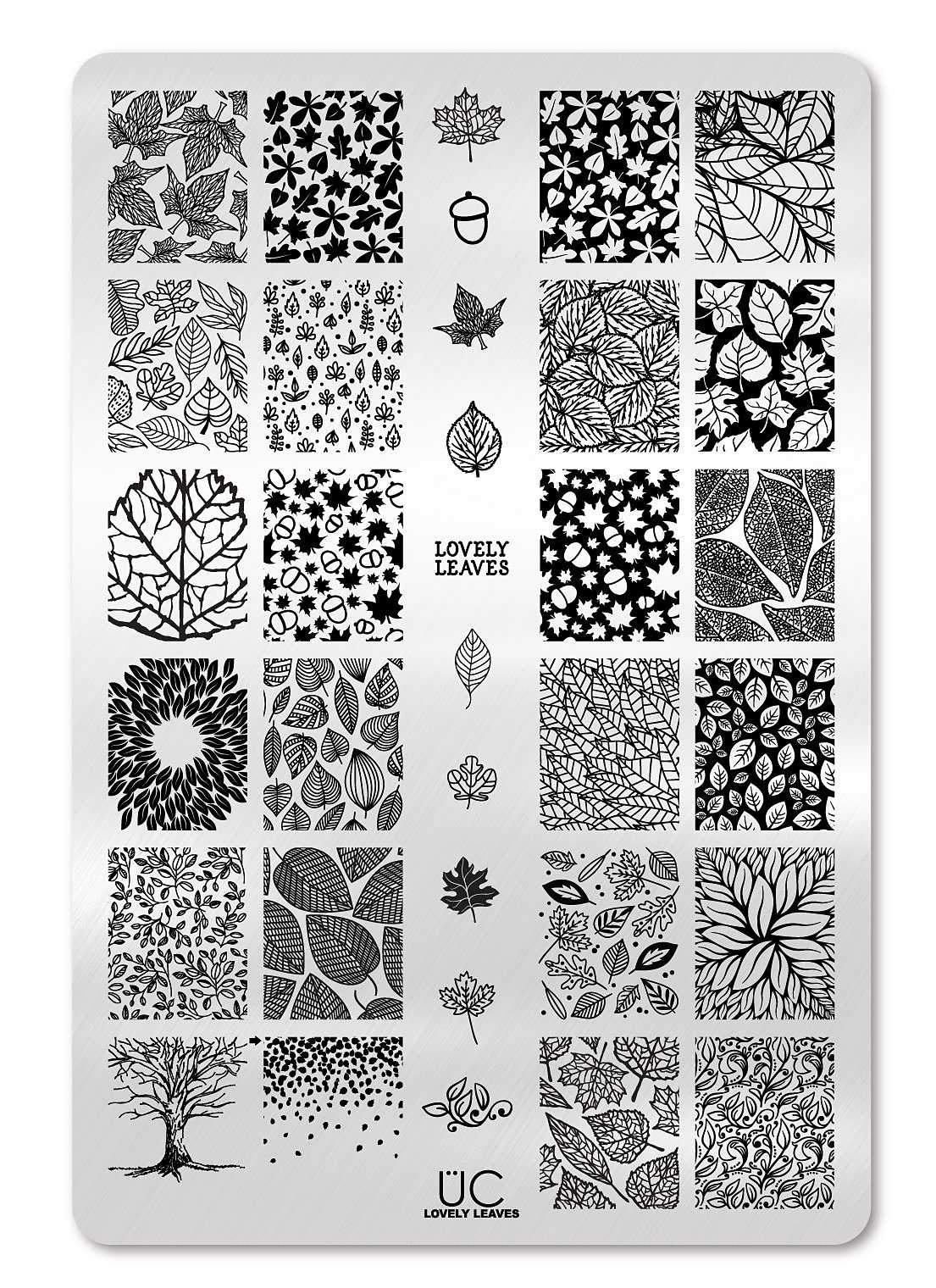 We had a lot of requests last fall to create a leaf plate so we planned ahead this year and started out making designs for an Uber Mini...we ran out of room so fast we had to upgrade it to a full Single plate! So embrace the changing of the seasons, your love of leaves and all the fall colors they bring with this plate full of so many lovely lovely leaves! Also be sure to checkout the bottom left corner and you'll see two stamps that can be easily layered for a magical effect. We have added a small arrow between them to show which ones can be layered.