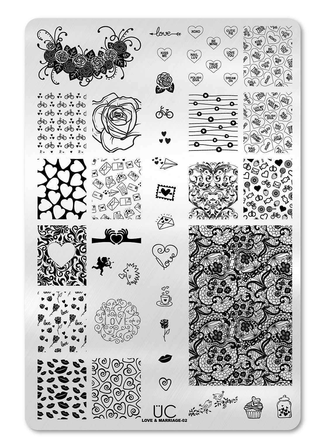 Technical stuff: The size of each plate is 9.5cm by 14.5cm and the plates in this collection have coordinating single images down the center, The designs are engraved on the image plates and can be used over and over again - never wearing out. The designs are 17 x 21mm and are built to cover edge-to-edge even the largest natural nail size.
